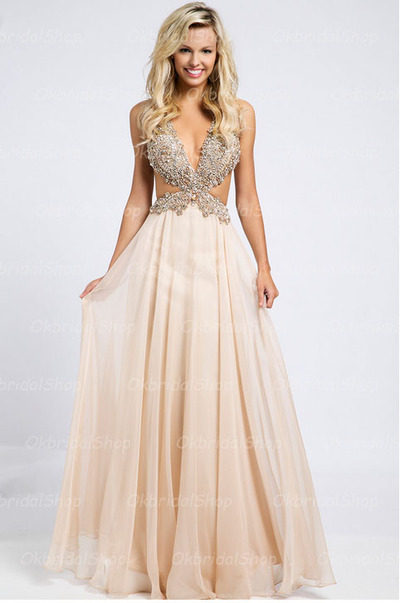 cheap sexy prom dress, chiffon prom dress, champagne prom dress, long ...